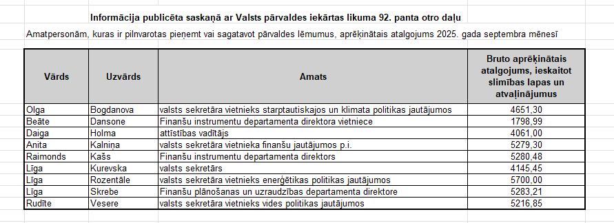 Informācija par amatpersonu un darbinieku mēnešalgas apmēru sadalījumā pa amatu grupām (BRUTO, euro)