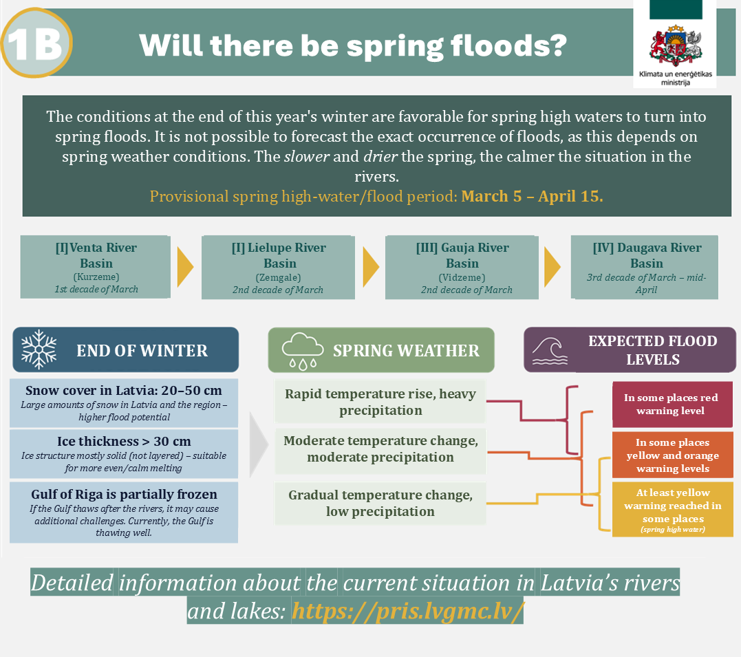 Šoziem sniega sega Latvijā bijusi īpaši bagātīga, salīdzinot ar pēdējiem pieciem gadiem. Arī ledus kārta Latvijas upēs šoziem ir izveidojusies biezāka nekā citus gadus. Šādi ziemas noslēguma apstākļi var ietekmēt pavasara palu norisi un vietām paaugstināt ūdens līmeni, tostarp tur, kur tas iepriekš novērots retāk vai nemaz. Šogad ziemas noslēguma periods ir labvēlīgs tam, lai pali varētu kļūt par plūdiem.